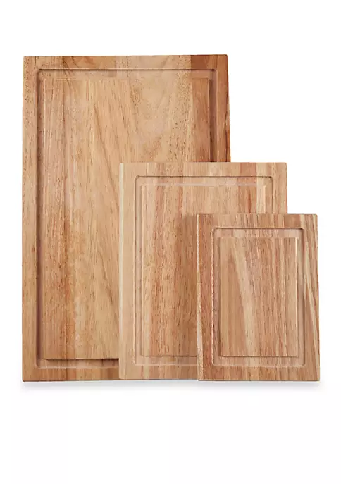 With grooved channels to catch juices for making sauces these three inexpensive cutting boards are ideal for carving roasts and poultry. Plus, they flip over to provide flat sides to prep vegetables or slice and serve bread. Because the set consists of a large, medium, and small board, all cutting and carving needs are satisfied.