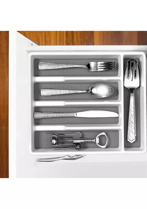Designed to organize your flatware drawer, this 5-section organizer from Farberware features a rubber lining to keep things from sliding around.