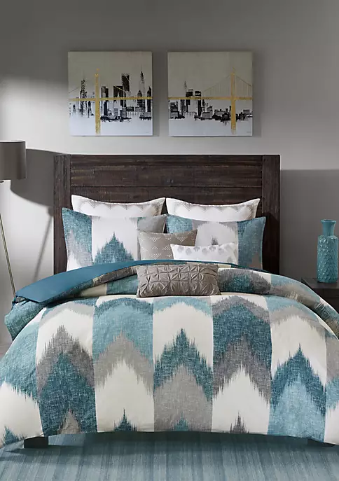 Featuring a subtle chevron pattern with earth tones like teal and grey, this 3-piece set from INK + IVY® comes with a duvet cover and two shams for a unique and feminine bedroom style.