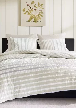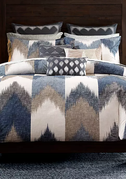 Jazz up your bedroom with this incredible comforter mini set. Rich shades of navy and taupe play up the broken chevron motif for a casual update. This collection uses a unique technique that offers a clean, duvet-like finish with no bar tack on top of the comforter.