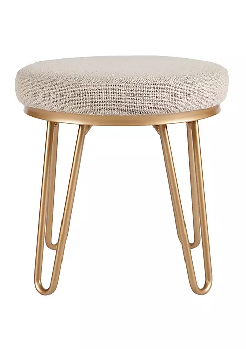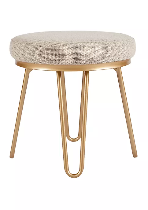 Reinvigorate your home decor with the simple elegance of the INK + IVY® Beverly Round Stool. Flaunting a gold patina frame and legs, this round stool features an attached cushion in tan upholstery to create a stunning mid-century look. Beautify your living room or bedroom by incorporating the gorgeous appeal of this round stool into your decor.