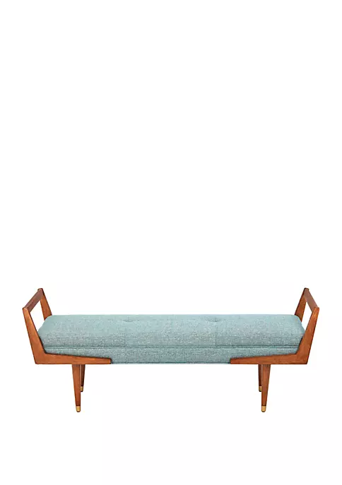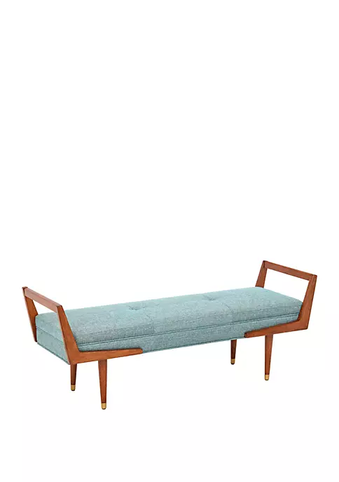 The INK + IVY® Boomerang Bench makes an alluring addition to any living room or bedroom. Made with a solid wood frame and high-density foam filling, this padded bench offers long-lasting support and comfort. A pecan wood finish adds a warm touch while creating a stunning contrast with the upholstered seat. Functional and versatile, this bench is sure to make a statement in your home.