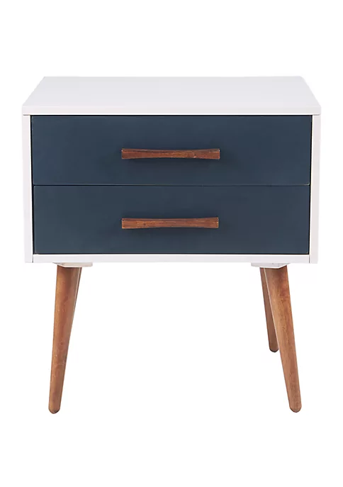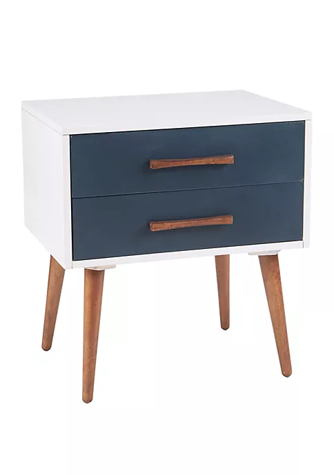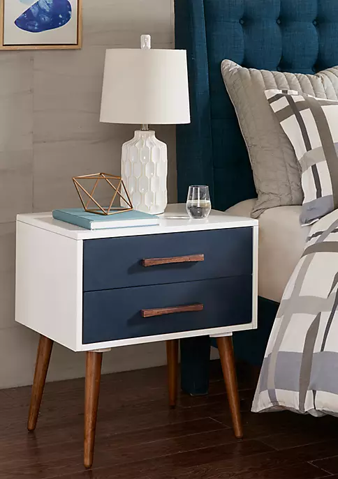 Transform your home with the striking style of the INK + IVY® Jeremy Storage Nightstand. This rectangular nightstand features two pull-out drawers to easily store and keep your essential items within reach. The navy hues on the drawers are complemented by pecan wood handles and legs that stand out against the white frame. Create a stunning mid-century modern look in your bedroom with this handsome storage nightstand.