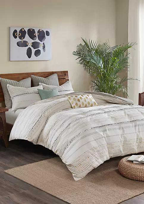 The matching shams feature a one-inch flange and an overlap closure on the back to easily insert your pillows. Made from 100% cotton, this cotton printed duvet cover set is machine washable for easy care and brings a modern touch with boho flair to your bedroom. Button closures allow you to place a comforter insert within the duvet cover and four inside ties on the corners help prevent it from shifting.