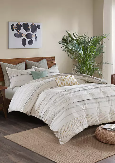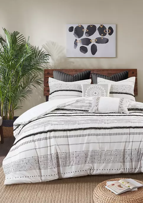 The matching shams feature a one-inch flange and an overlap closure on the back to easily insert your pillows. Made from 100% cotton, this cotton printed duvet cover set is machine washable for easy care and brings a modern touch with boho flair to your bedroom. Button closures allow you to place a comforter insert within the duvet cover and four inside ties on the corners help prevent it from shifting.
